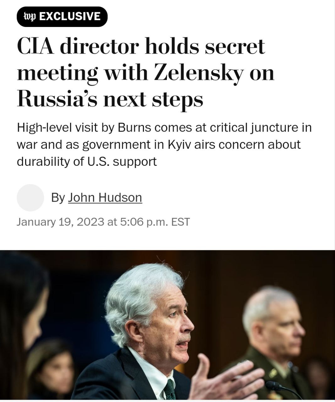 09.51 Еще детали со встречи директора ЦРУ Бернса и президента Зеленского в Киеве, которая состоялась на прошлой неделе.