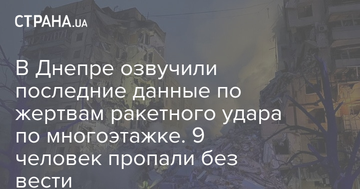 В Днепре озвучили последние данные по жертвам ракетного удара по многоэтажке. 9 человек пропали без вести