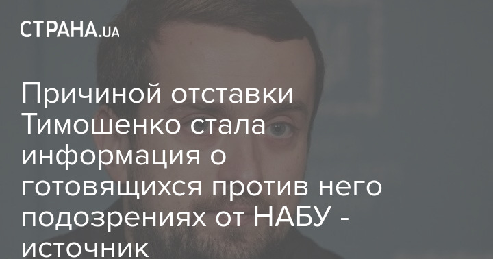 Причиной отставки Тимошенко стала информация о готовящихся против него подозрениях от НАБУ - источник