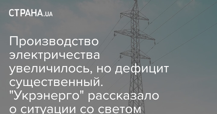 Производство электричества увеличилось, но дефицит существенный. "Укрэнерго" рассказало о ситуации со светом