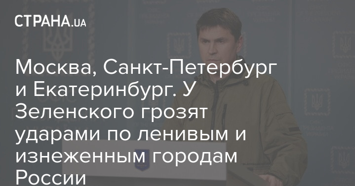 Советник главы Офиса президента Михаил Подоляк предсказал удары по Москве, Санкт-Петербургу и Екатеринбургу.