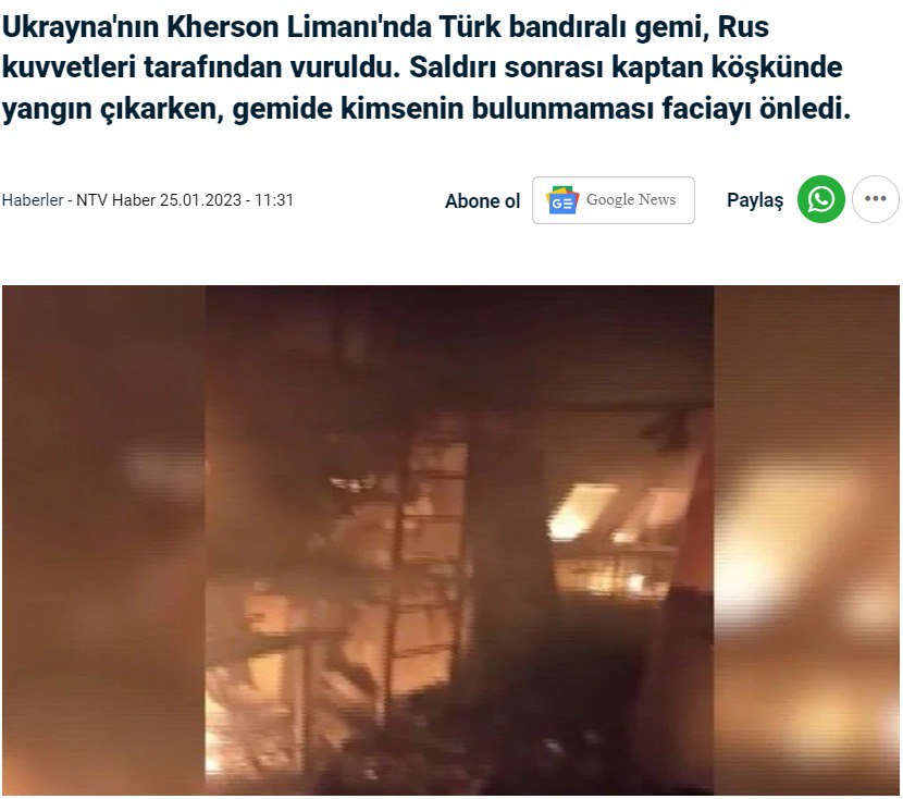 23:07 В порту Херсона россияне попали в судно "Тузла" под флагом Турции.