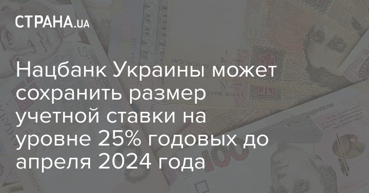 Национальный банк Украины сохранил размер учетной ставки на уровне 25% годовых, он может сохраниться до конца I квартала 2024 года.
