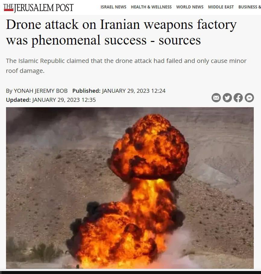 "Израиль нанес удар беспилотником по оборонному комплексу в Иране, поскольку США и Израиль ищут новые способы сдерживания ядерных и военных амбиций Тегерана", - пишет авторитетное американское издание.
