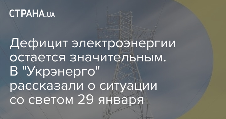 В воскресенье, 29 января, дефицит в энергосистеме Украины все еще значителен. Уровень потребления - примерно такой же, как и вчера.