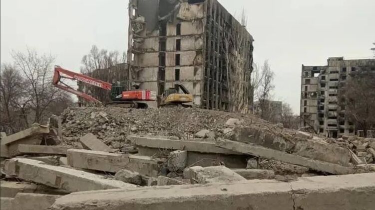 В Мариуполе продолжают сносить разрушенные дома. Фото: Telegram