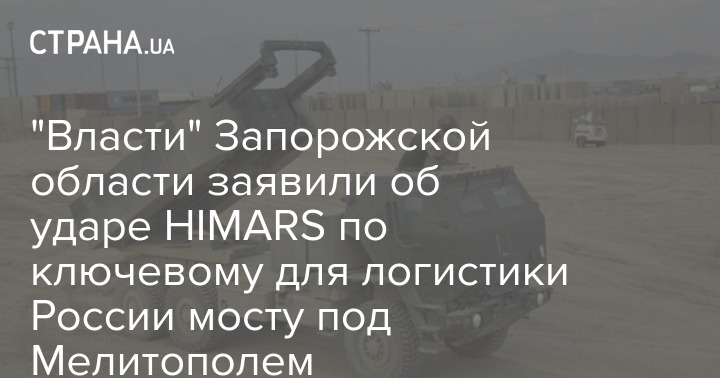 "Власти" Запорожской области заявили об ударе HIMARS по ключевому для логистики России мосту под Мелитополем