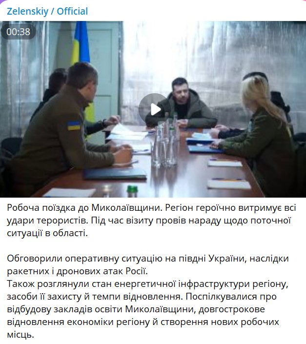 Сам Зеленский уже написал в своём телеграмм-канале о посещении Николаевской области.