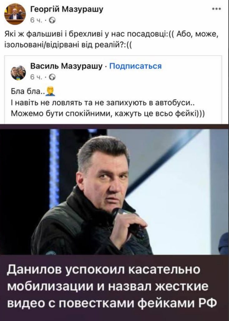 09:20 Депутат "Слуга народа" Георгий Мазурашу у себя на странице в Facebook назвал секретаря СНБО Алексея Данилова фальшивым и лживым чиновником.