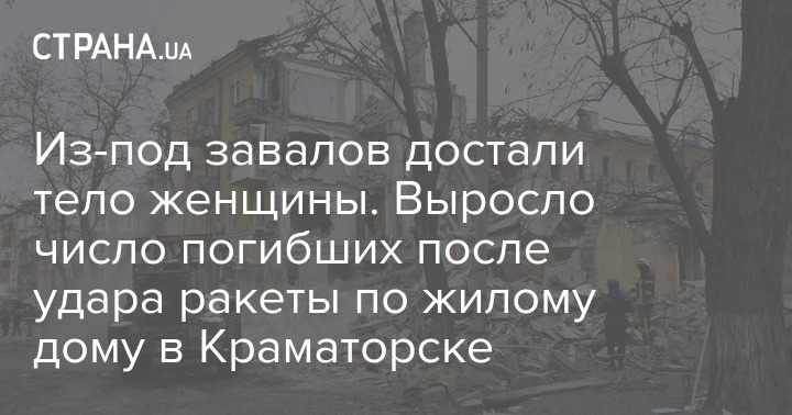 Из-под завалов жилого дома в Краматорске, по которому ударила российская ракета, достали тело погибшей женщины.