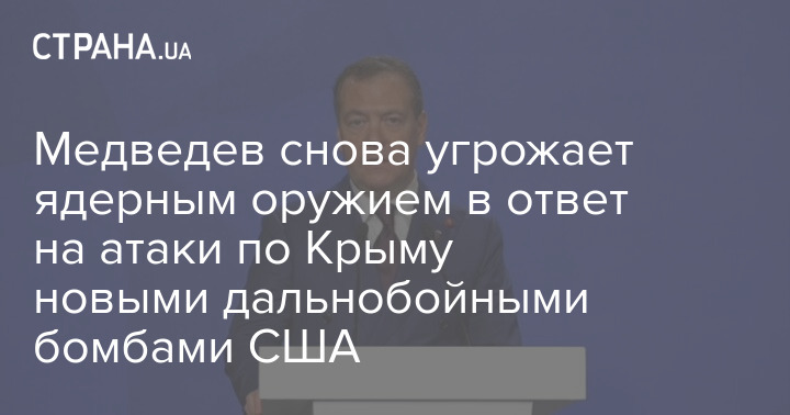 Зампред Совбеза РФ Дмитрий Медведев пригрозил "ударами возмездия" в случае ударов по Крыму новыми дальнобойными бомбами, которые США предоставят Украине.