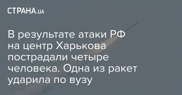 В результате атаки РФ на центр Харькова пострадали четыре человека. Одна из ракет ударила по вузу