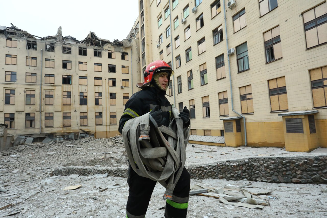 Во время атаки РФ на центр Харькова утром 5 февраля одна из ракет попала по главному корпусу Харьковского национального университета городского хозяйства имени А.М. Бекетова, в результате разрушены три этажа здания.