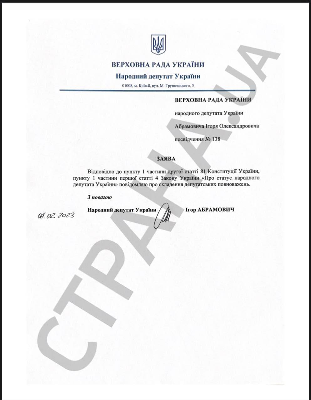 Заявление Игоря Абрамовича о сложении депутатского мандата датировано сегодняшним днём.