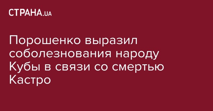 Президент Украины Петр Порошенко выразил соболезнования народу Кубы в связи со смертью лидера кубинской революции Фиделя Кастро. Об этом он написал в своем микроблоге в Twitter.