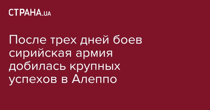 После трех дней боев сирийская армия добилась крупных успехов в Алеппо