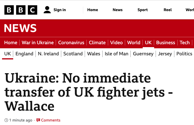 Напомним, вчера премьер Британии попросил главу Минобороны выяснить, какие самолеты Британия потенциально может передать Украине.