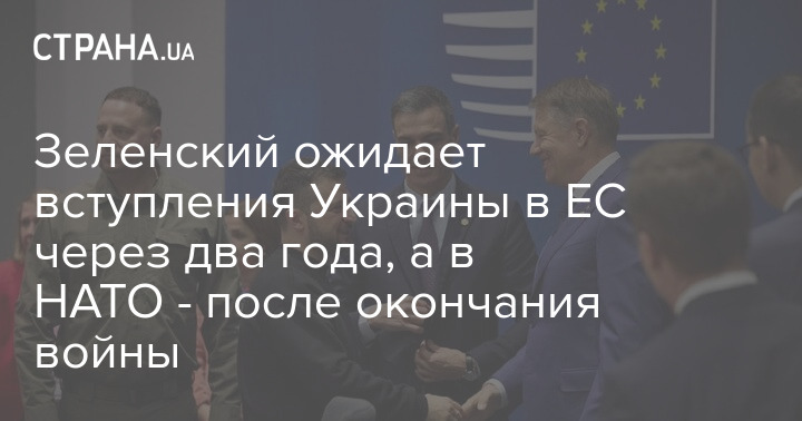 Президент Украины Владимир Зеленский заявил, что рассчитывает на вступление Украины в ЕС через два года, а в НАТО - после окончания войны.