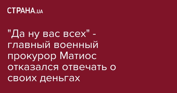 "Да ну вас всех" - главный военный прокурор Матиос отказался отвечать о своих деньгах