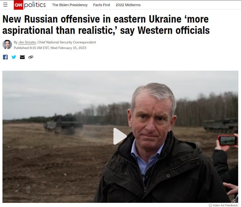 CNN пишет, что "хотя украинские официальные лица бьют тревогу по поводу новых атак России на востоке, украинская сторона также скептически относится к возможностям России в ее нынешнем состоянии".
