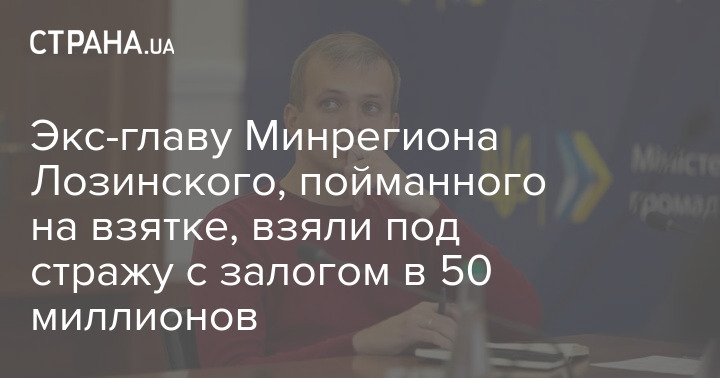 Экс-главу Минрегиона Лозинского, пойманного на взятке, взяли под стражу с залогом в 50 миллионов