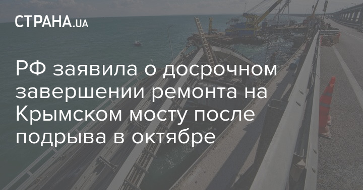 РФ заявила о досрочном завершении ремонта на Крымском мосту после подрыва в октябре