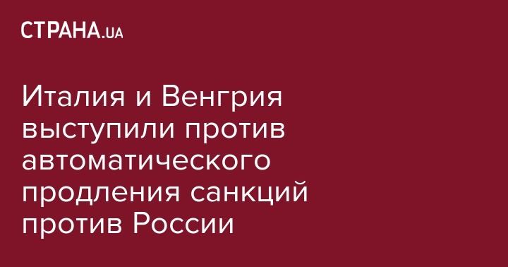 Италия и Венгрия выступили против решения Европейского союза об автоматическом продлении санкций по отношению к России.