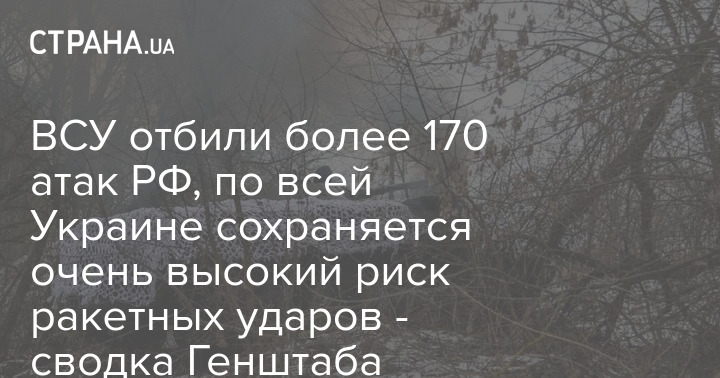 ВСУ отбили более 170 атак РФ, по всей Украине сохраняется очень высокий риск ракетных ударов - сводка Генштаба