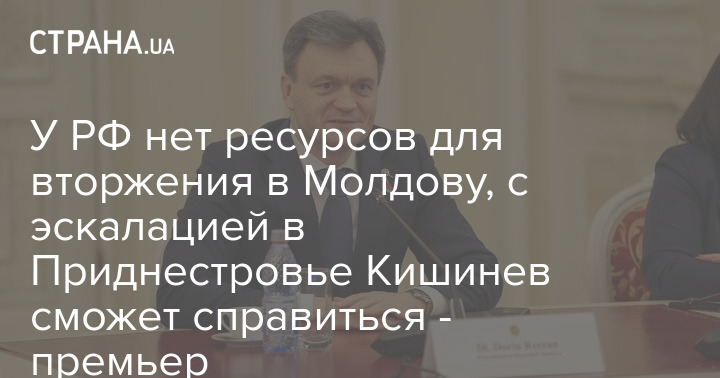 У РФ нет ресурсов для вторжения в Молдову, а у Кишинева достаточно потенциала, чтобы справиться с возможной эскалацией в Приднестровье, заявил премьер Молдовы Дорин Речан в эфире румынского телевидения.