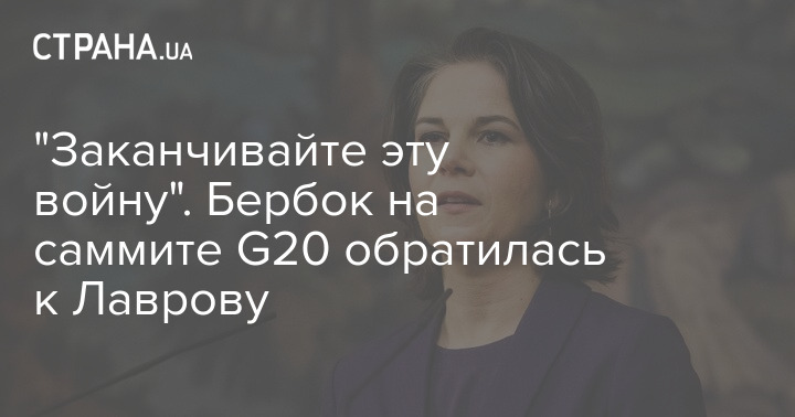 Глава МИД Германии Анналена Бербок обратилась к российскому коллеге Сергею Лаврову на саммите G20 с призывом "заканчивать войну".