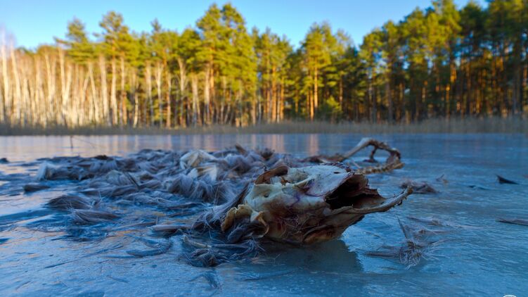 Проза жизни природы. Чернобыльский заповедник показал живописные останки вмерзшего в лёд оленя