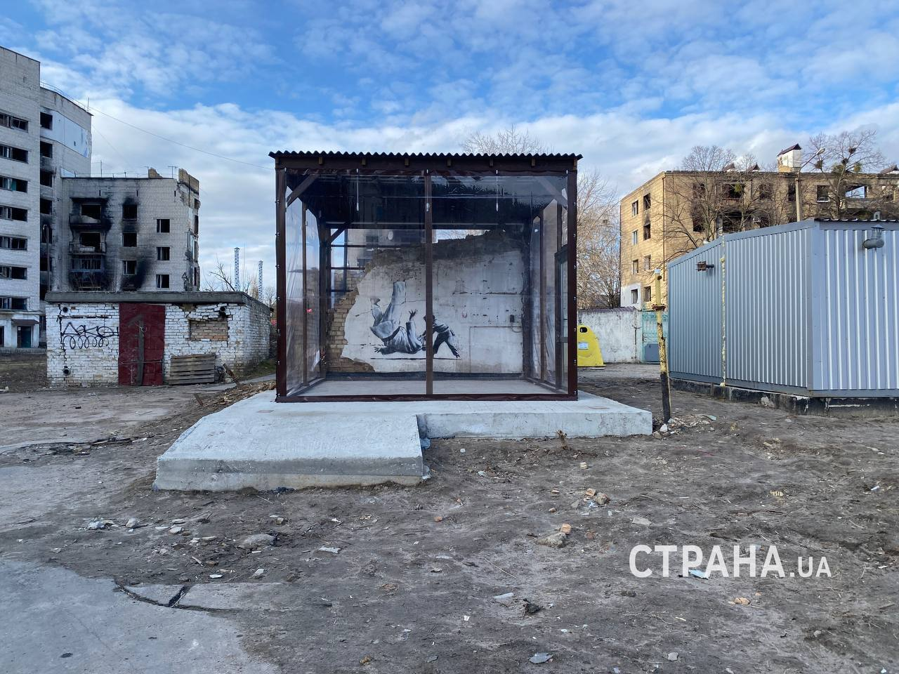 В Бородянке для защиты граффити британского художника Бэнкси соорудили небольшой павильон.