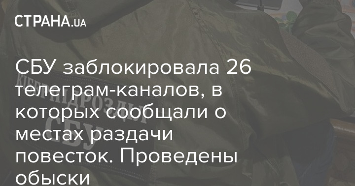 Служба безопасности Украины заблокировала 26 телеграм-каналов, в которых сообщали актуальные места раздачи повесток. У шести администраторов пабликов уже провели обыски, им готовятся вручить подозрения.