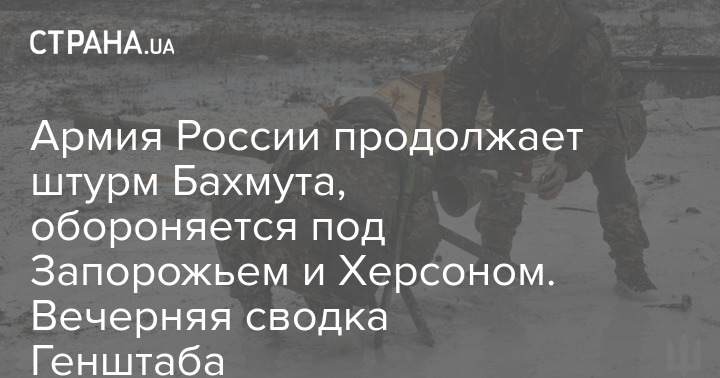 В Генеральном штабе Вооруженных сил Украины опубликовали оперативную сводку с фронта по состоянию на 18:00 8 марта. Сообщается, что российские войска штурмуют Бахмут и обороняются под Запорожьем и Херсоном.