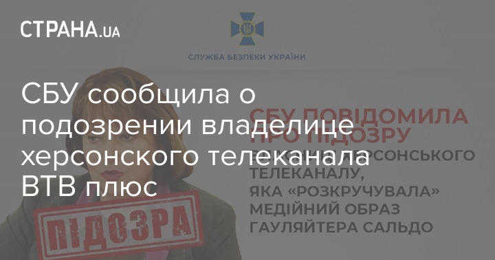 СБУ сообщила о подозрении владелице херсонского телеканала "ВТВ плюс" Татьяне Каменской. Ее обвиняют в "раскрутке" медийного образа российского "губернатора" Владимира Сальдо и в целом добровольной работе телеканала на РФ.