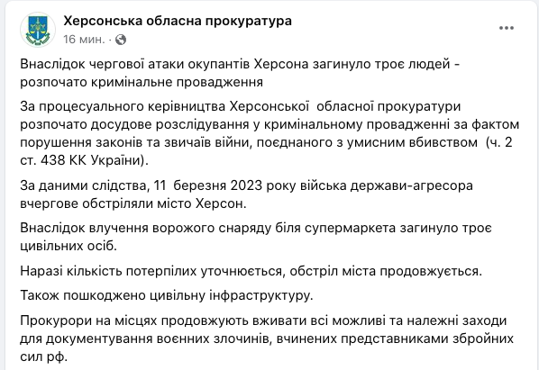 Возле супермаркета в Херсоне от обстрела РФ погибли три человека. Фото