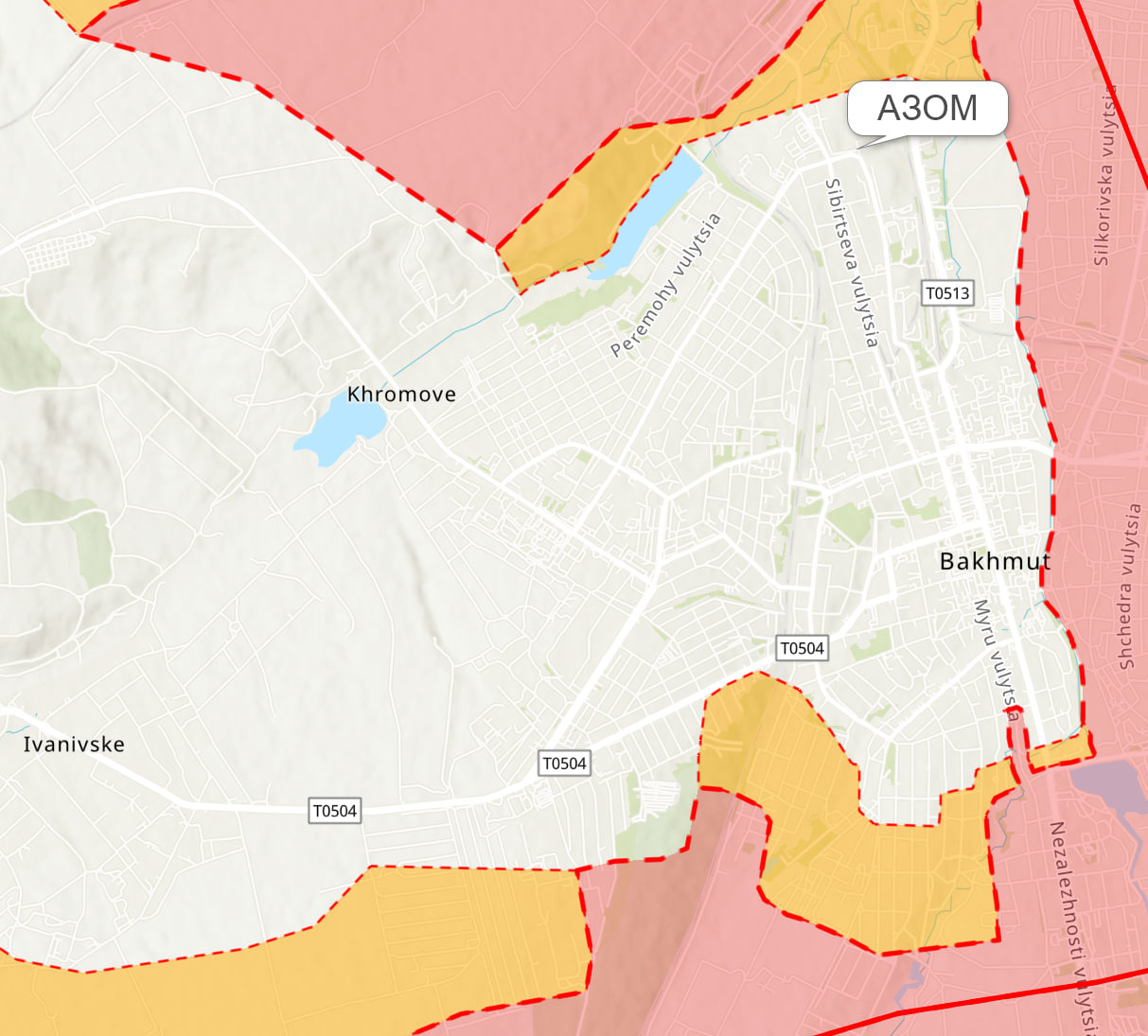 "На кадрах с геолокацией, опубликованных 10 марта, видно, что российские силы продвинулись на новые позиции на северо-западе Бахмута в пределах 800 метров от металлообрабатывающего завода АЗОМ", - говорится в сообщении.