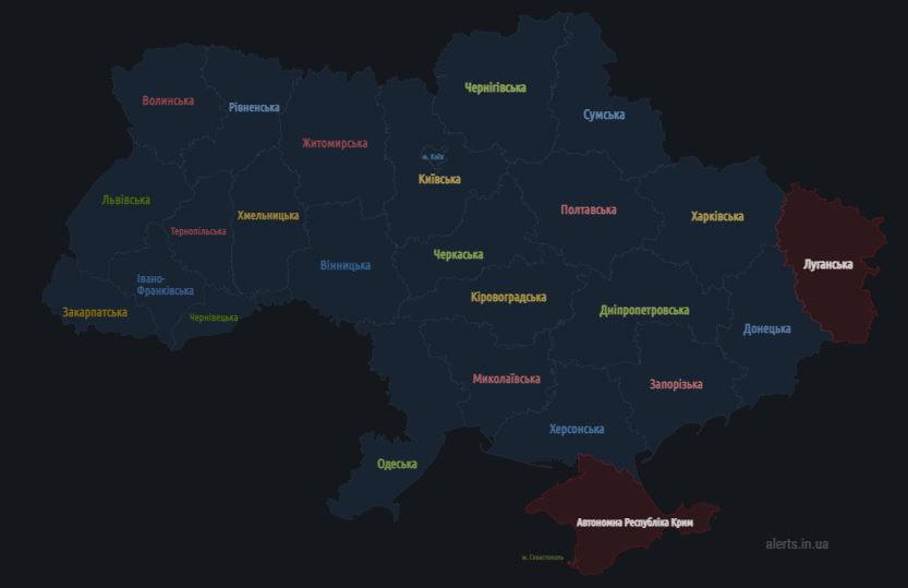 08.45 Воздушная тревога в некоторых регионах Украины.