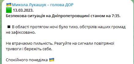 07.50 В Днепропетровской области ночь прошла без обстрелов.