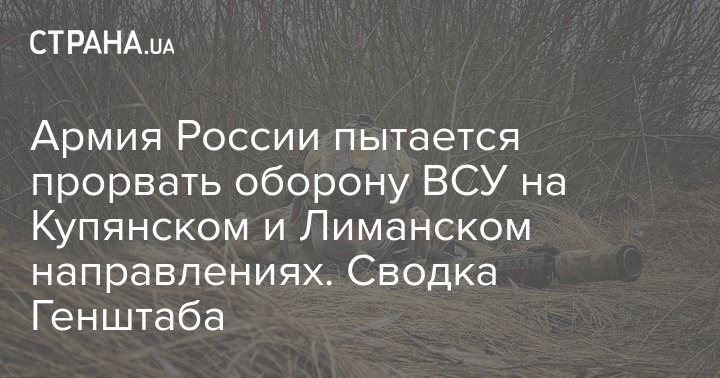 • На Купянском и Лиманском направлениях россияне пытаются прорвать оборону ВСУ. Были отбиты их атаки в направлениях Гряниковки, Масютовки, Невского, Серебрянского лесничества, Белогоровки и Верхнекаменки.
