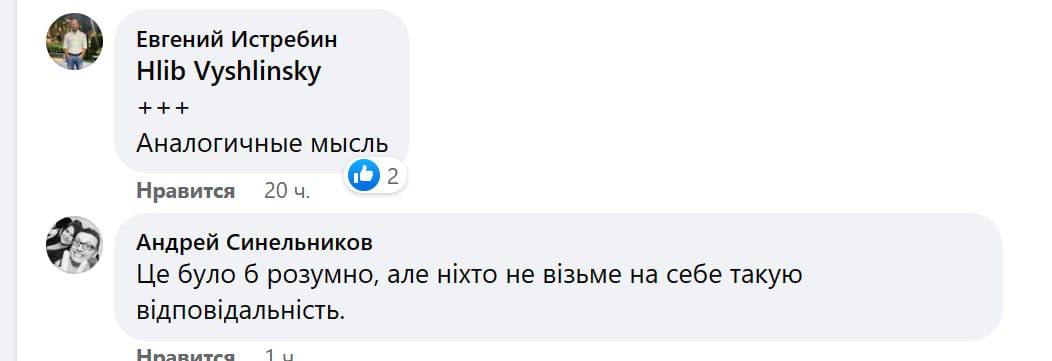 В комментариях по этому поводу развернулась полемика. Сотрудница "Укрэнерго" Мария Цатурян пишет, что "никто не знает, куда оно прилетит: на подстанцию или в офис Укрэнерго, на ТЭС или ГЭС, в офис какой-то другой компании или в жилой дом". Поэтому объявляются массовые тревоги.