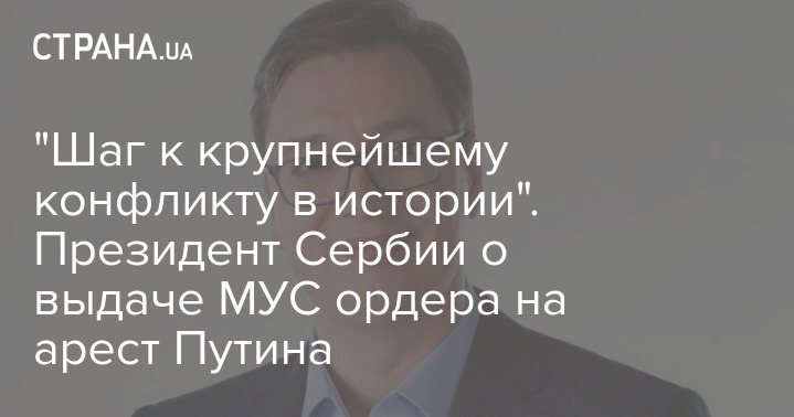 Президент Сербии Александр Вучич назвал решение Международного уголовного суда (МУС) в Гааге о выдаче ордера на арест президента России Владимира Путина "шагом к крупнейшему конфликту в истории мира".