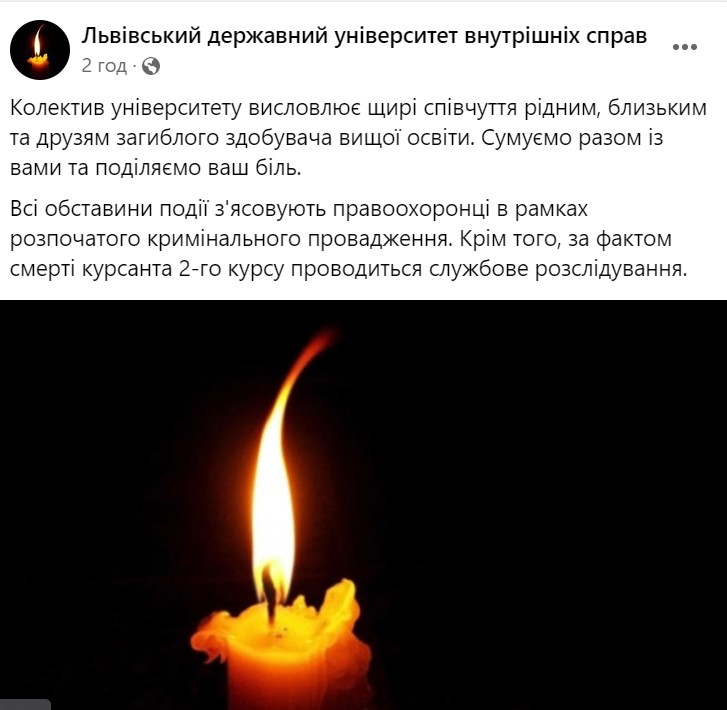 Во Львове курсант второго курса Львовского государственного университета внутренних дел совершил самоубийство. Возможной причиной называют конфликт с руководством университета.