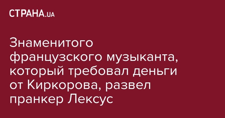 Пранкер Алексей Столяров (Лексус) признался, что это он обманул знаменитого музыканта Маруани, представившись Филиппом Киркоровым. Об этом пранкер сам сообщил URA.Ru