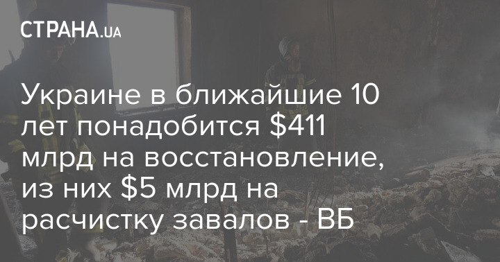 В течение следующих 10 лет Украине потребуется 411 миллиардов долларов на восстановление после войны, при этом только на расчистку завалов в городах и поселках потребуется 5 миллиардов долларов, подсчитал Всемирный банк.
