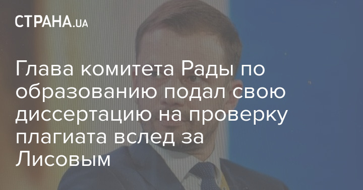 Глава комитета Рады по образованию подал свою диссертацию на проверку плагиата вслед за Лисовым