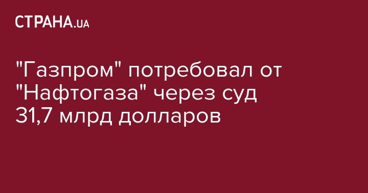 "Газпром" потребовал от "Нафтогаза" через суд 31,7 млрд долларов
