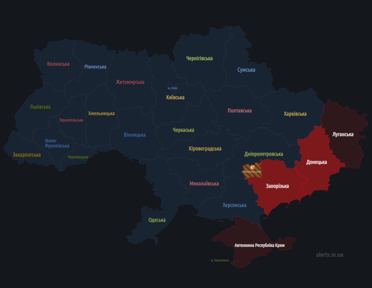 14:28 Воздушная тревога объявлена в восточных областях.