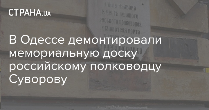 В центре Одессы была демонтирована мемориальная доска в честь российского полководца Александра Суворова.