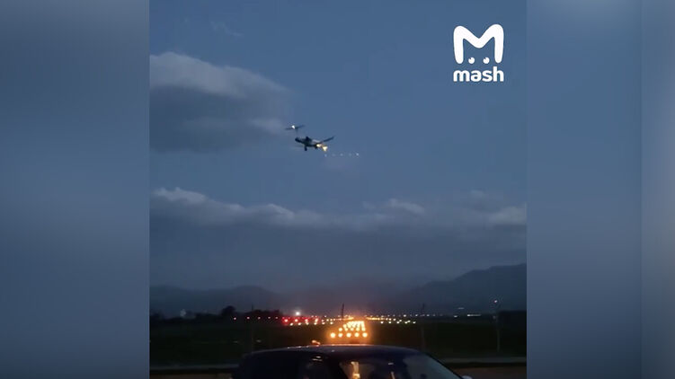 В грузинском Батуми ураганный ветер заставляет самолеты приземляться боком, а крыши сдувает с многоэтажек. Люди еле-еле держатся на ногах.